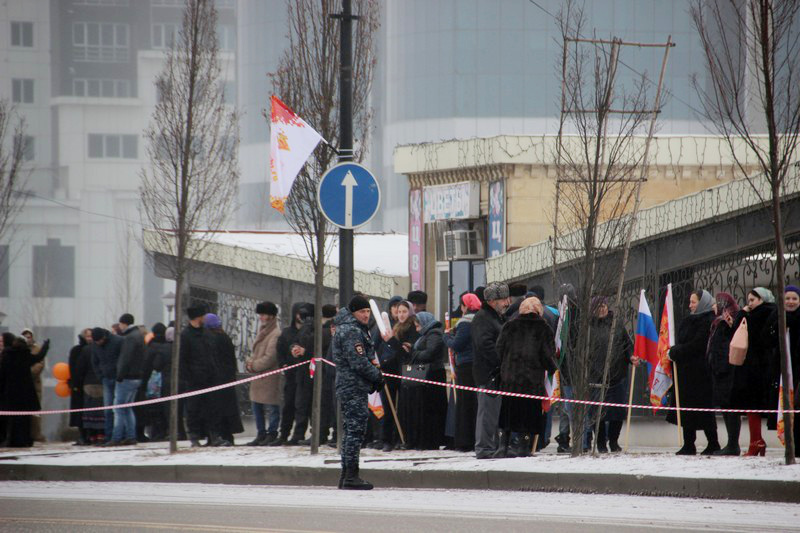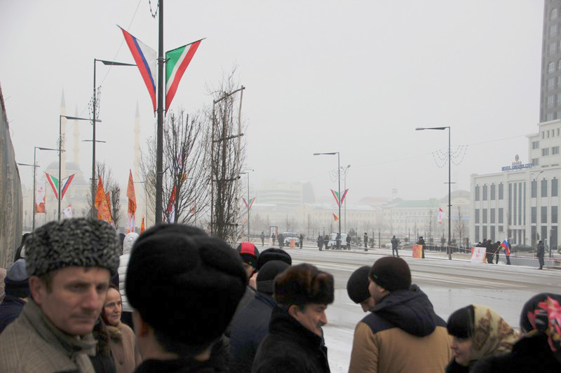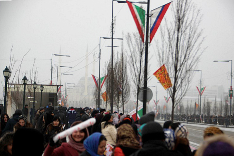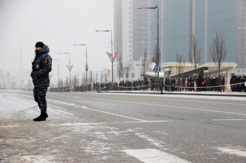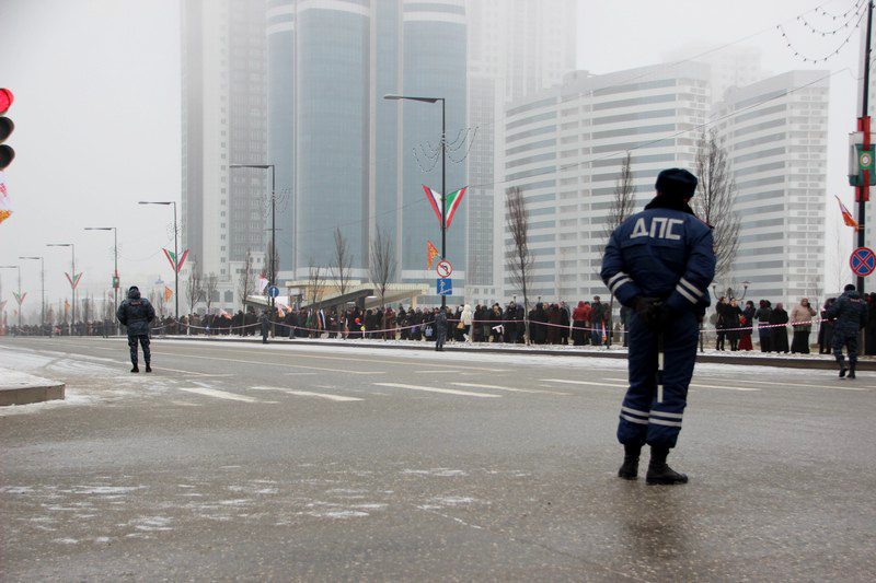 Всего в церемонии встречи огня Олимпиады приняли участие около 70 тысяч человек. Центр чеченской столицы с утра был блокирован усиленными нарядами полиции и военных, в городе введен режим “Стоп колеса”. Олимпийский огонь факелоносцы встретили в аэропорту “Грозный” и пронесли по центральным улицам чеченской столицы до стадиона “Ахмат-Арена” в Ленинском районе города. Чеченские власти сократили маршрут эстафеты олимпийского огня в республике с 34 до 16 километров. По всему маршруту следования эстафеты дежурят наряды полиции.