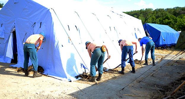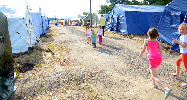 Гуково – полевой пункт временного размещения (ПВР) для граждан Украины, вынужденно покинувших свою страну, до границы с Украиной около 1 км