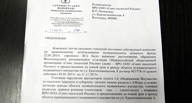 Волгоградское отделение Союза писателей России под угрозой выселения. Волгоград, 26 февраля 2015 года. Фоторепортаж корреспондента "Кавказского узла" Татьяны Филимоновой